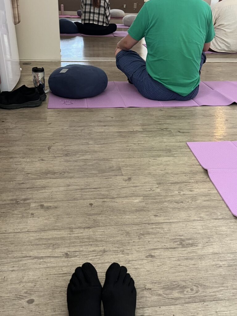 午後は呼吸を意識したヨガに。胸を大きく動かしたり、下肢のストレッチを行うことで呼吸しやすくなるそうです。今日のヨガは若干汗ばむ感じでした。それだけ大きく呼吸を繰り返していたんだなと実感した次第です