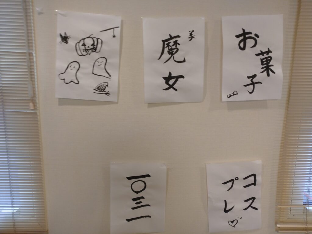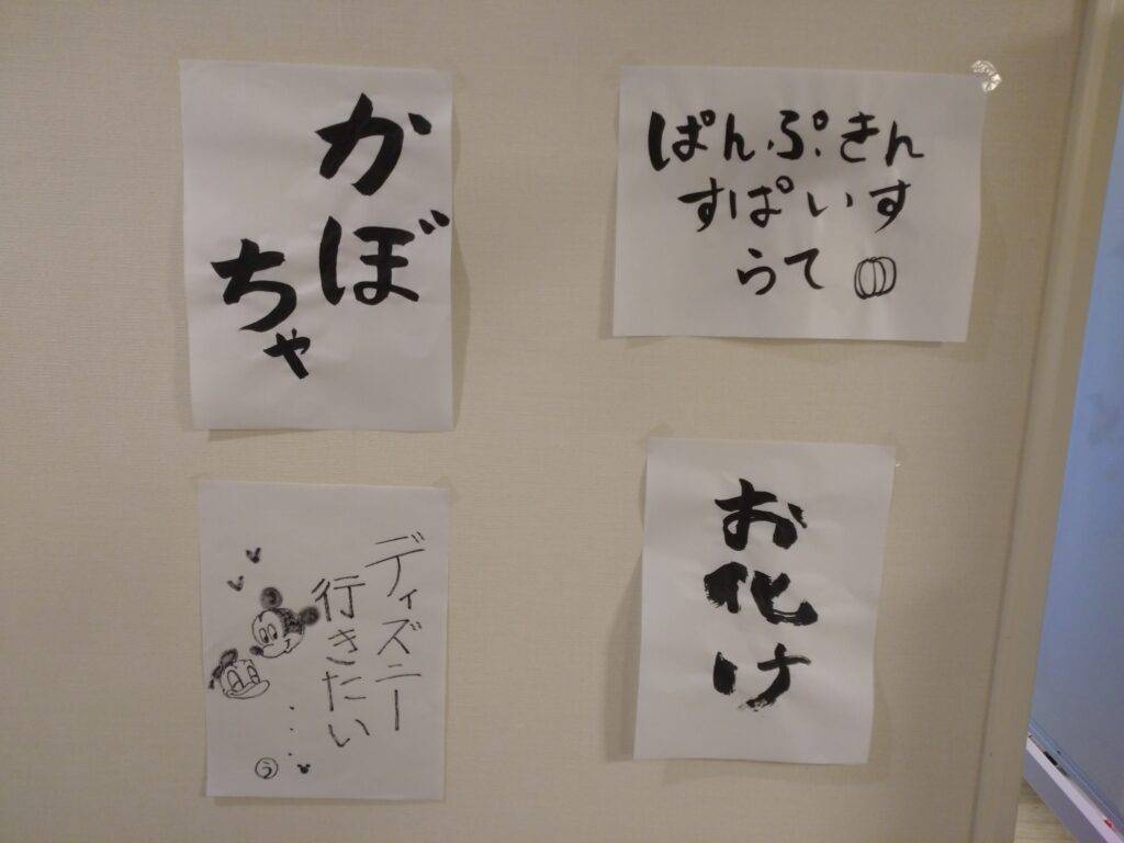 本日、午前中は書道とコーヒークラブでした。書道は今回『ハロウィン』をテーマに作品作りをしました。作品(下に掲載)を見て、「あーもうハロウィンか~」と時間の流れを痛切に感じた方も少なくないのではないでしょうか。書道と平行して行われたコーヒークラブですが、今回2回目の実施になります。雨の中ではありましたが、有志を募って駅付近の『珈琲問屋』に行ってきました。相変わらずの品ぞろえの多さに圧倒されかけましたが、詳しいメンバーさんの助けもあり、なんとかコーヒー迷子にならずに済みました。珍しいコーヒーも手に入り、とても充実していたように思えます。