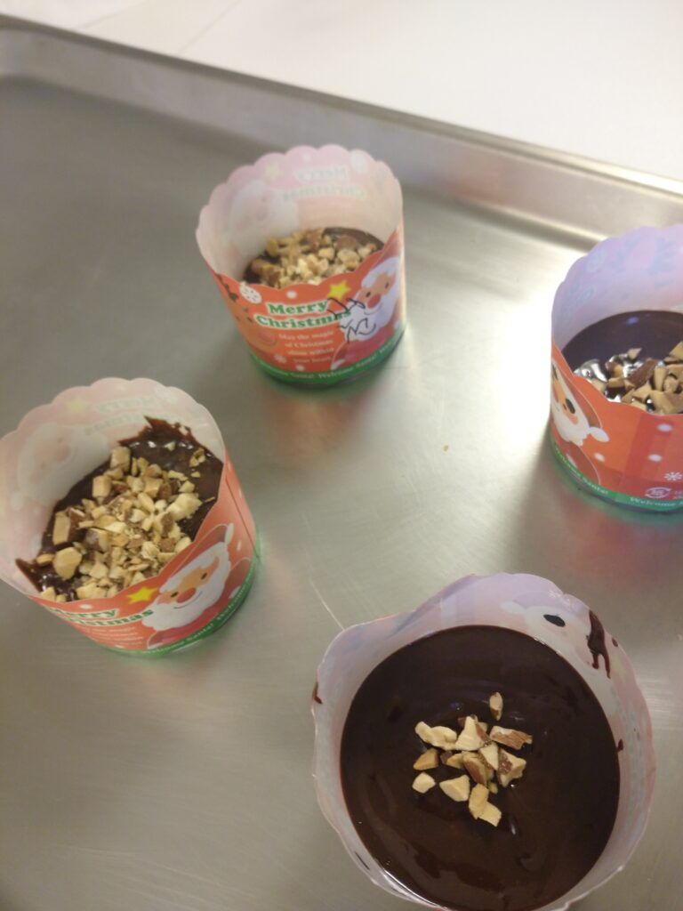 午後はおやつ作りで、今回はブラウニーを作成しました。今回は計量が多く、工程がやや複雑でしたが、ふっくらとしたとてもおいしいブラウニーが完成しました。本来、決して簡単ではないお菓子作りですが、プロの先生の丁寧なご指導のもと、安心して、かつ楽しく作業に集中できました。