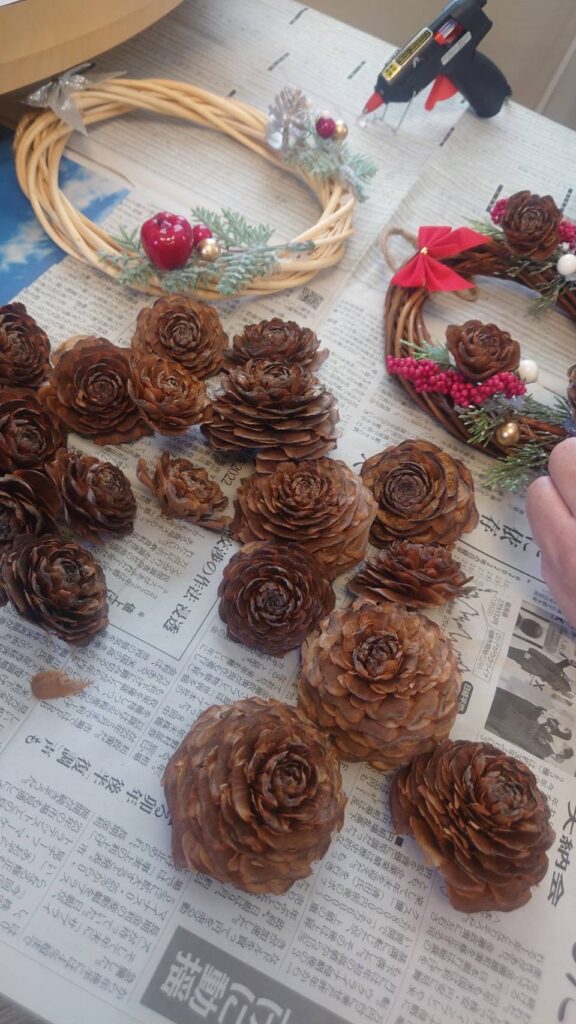 午後は、プログラムである手編みコースターづくりをされる方・クリスマスリースづくりをする方・ボードゲームの続きをされる方…その他、自主活動をする方々など、自由にゆったりと過ごされていました。
