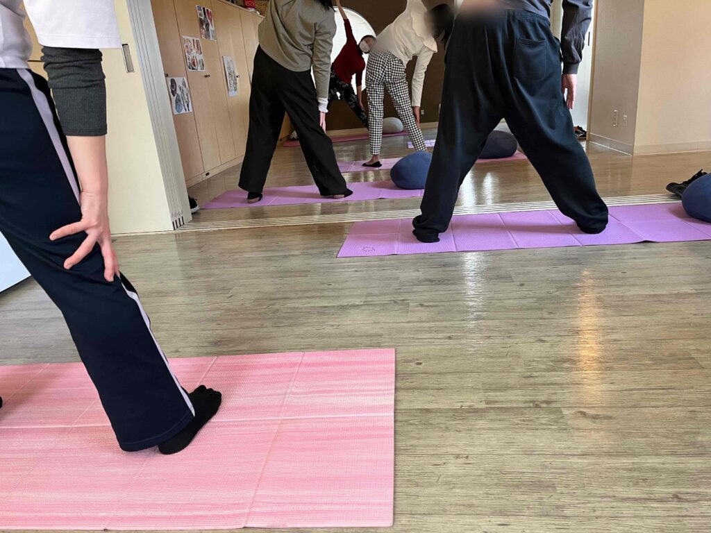 午後はヨガでした。今回は床にマットを敷いて実施しました。講師の先生のご指導のもと、心身ともにリラックスすることができました。後で聞くと、寝てしまっていた方もいらっしゃったみたいですね(笑)。穏やかな時間を過ごせていたならなによりです。