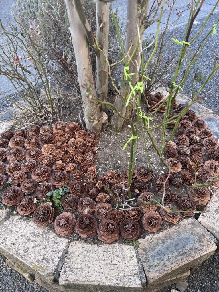 クリニック入り口に花壇があるのですが、いつの間にか沢山の松ぼっくりが日に日に増えていることに気づいたスタッフ。綺麗に並べてくれているメンバーさんは他のクリニックに通院しながらデイケアのみ通ってくださっている方だと判明!! 嬉しい。ありがとうございます。いつも楽しませていただいてます。