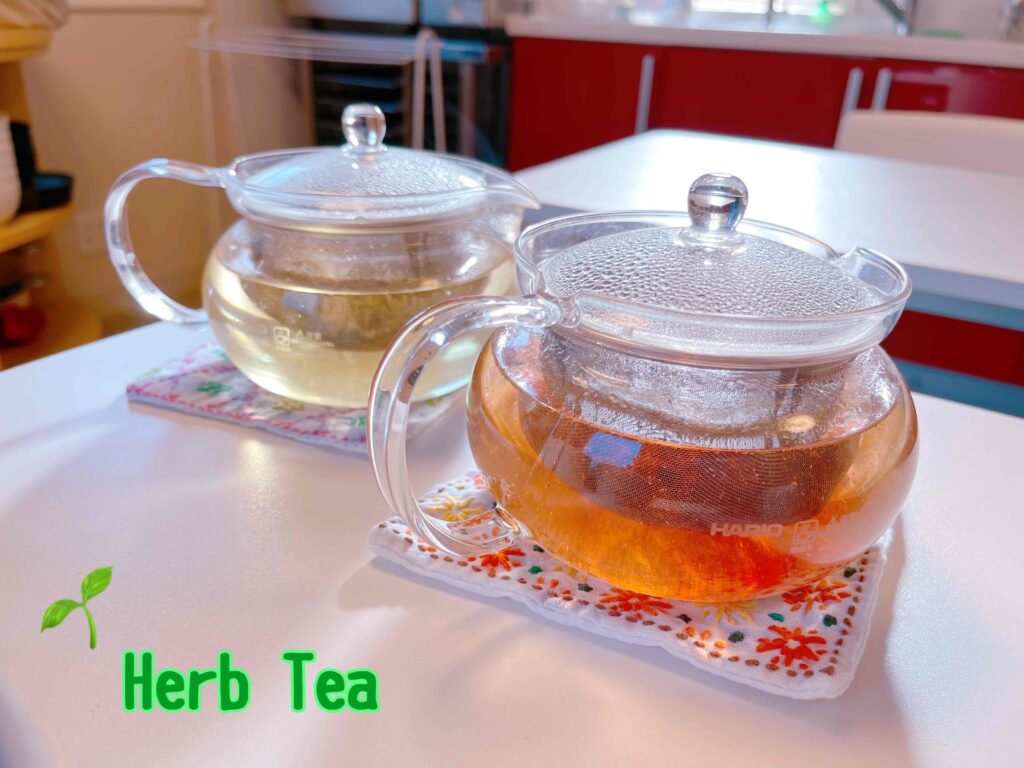 午後は床にマットを敷いてセラピーヨガ。ヨガは初めて!の方もいらっしゃっいましたが、緊張もカラダもココロもゆんるりほぐれたようです。先生の声を聞いてるだけで心地よい睡魔にさそわれるのは、きっと私だけじゃないはず。そんなヨガの後は、優しいハーブティーで体を潤しました。