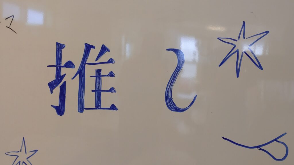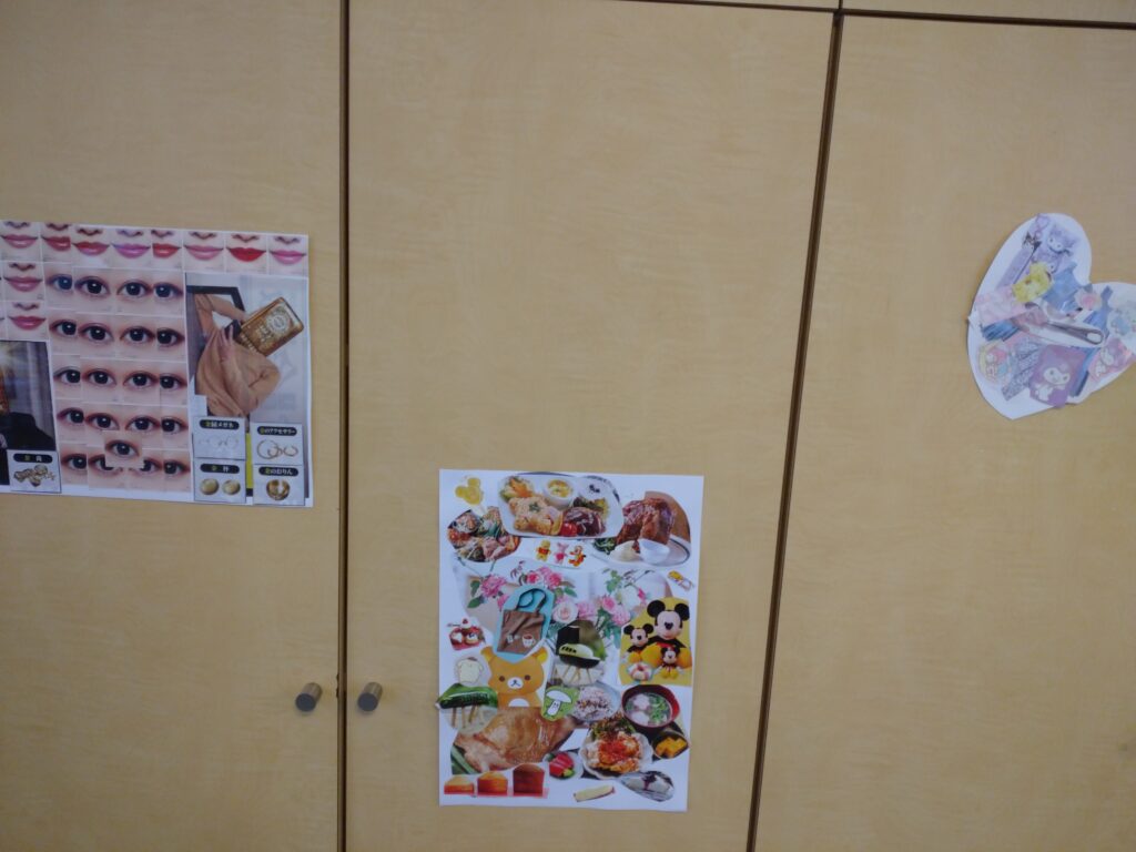 午前中はコラージュでした。コラージュとは、雑誌から記事を切り取って画用紙に貼っていき作品として仕上げたものをさします。今回のテーマは『推し』でした。『推し』というテーマからイメージを膨らませていただき、作品作りの方を行いました。みなさまの『推し』や、その推す理由を知ることができ、とても面白かったです。