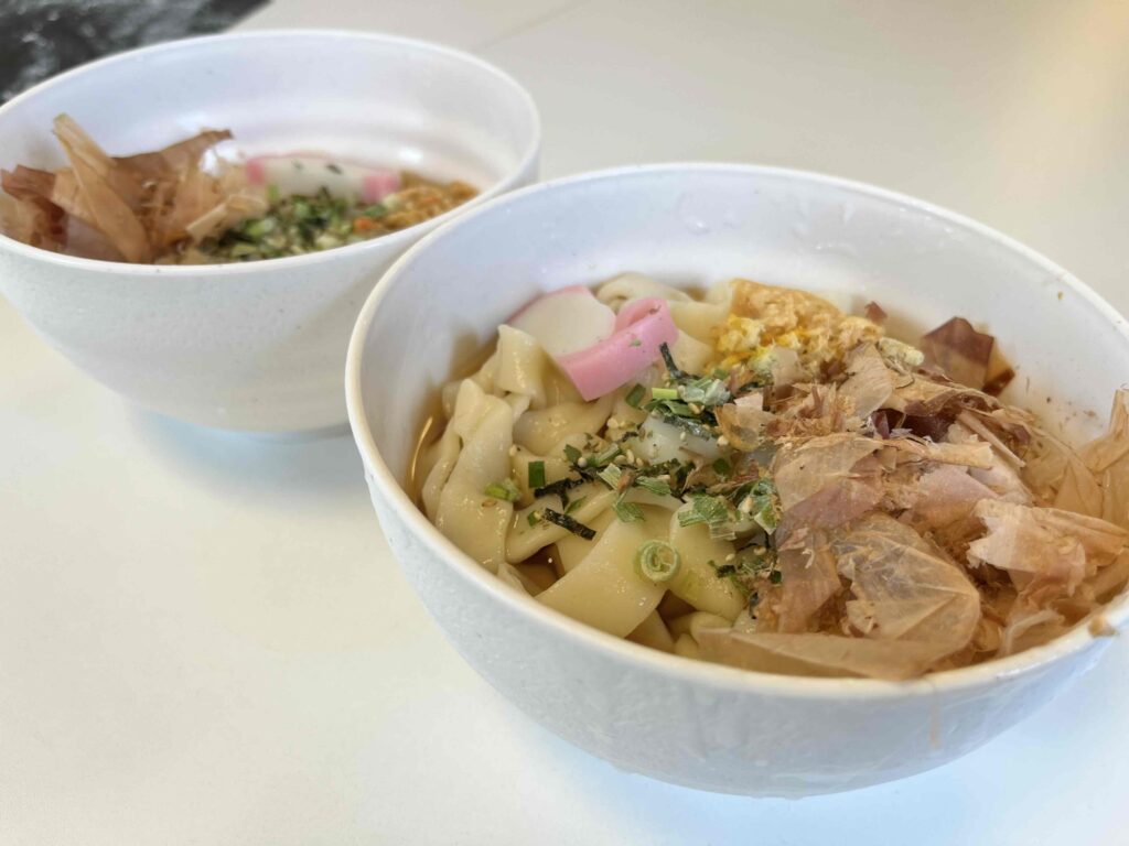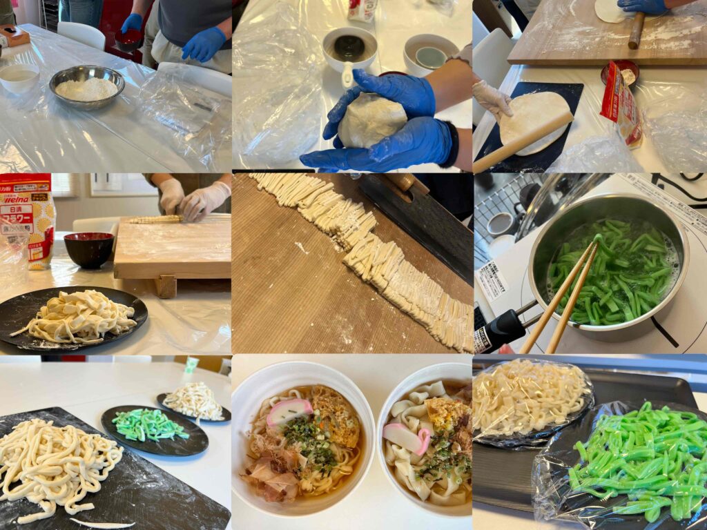 大人気のプログラム、うどん打ちです。初めてのうどん打ち体験に、誰よりもワクワクしているスタッフ約〇名。手慣れたメンバーさんに教えてもらいながら・・・できました!自分で打ったうどんの味はまた格別です。今回は気がついたら『緑のうどん』が生まれてました。前回は『青のうどん』。次回はいかに?!