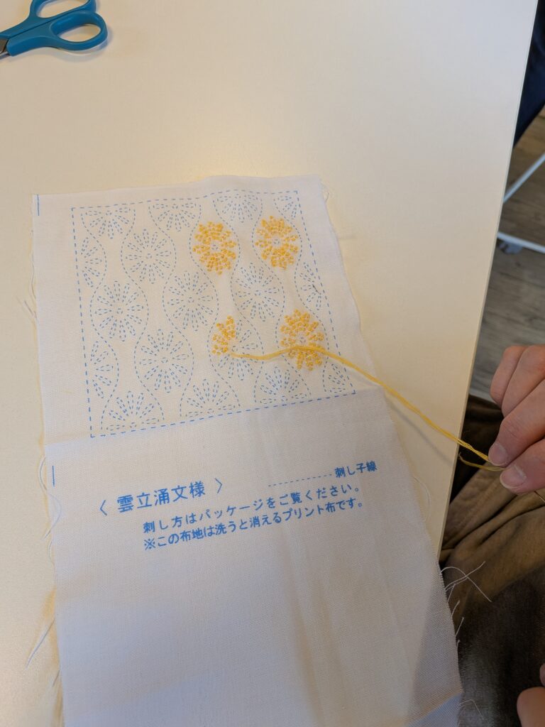 午前はゆったりとした空間の中でそれぞれ布に針を運び作品つくりを進めました。かなり集中していたせいかアッという間に時間が過ぎ。月曜日の午前はこの程度の活動量でいいのかもしれませんね。